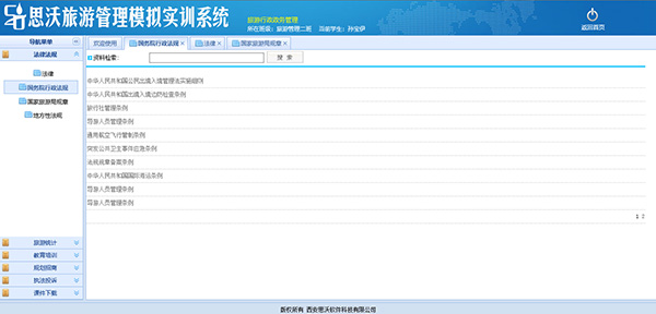 思沃旅(lv)(lv)(lv)(lv)游(you)(you)管(guan)理(li)模(mo)(mo)(mo)擬實(shi)(shi)訓系(xi)統(tong)分(fen)(fen)為(wei)(wei)模(mo)(mo)(mo)擬操(cao)作(zuo)和旅(lv)(lv)(lv)(lv)游(you)(you)知識練習兩大(da)模(mo)(mo)(mo)塊(kuai),涵蓋旅(lv)(lv)(lv)(lv)行(xing)(xing)社業(ye)的(de)分(fen)(fen)銷、操(cao)作(zuo)、結算、統(tong)計(ji)分(fen)(fen)析等(deng)各(ge)大(da)業(ye)務模(mo)(mo)(mo)塊(kuai),該實(shi)(shi)訓教(jiao)學(xue)(xue)平(ping)臺軟件具備(bei)團(tuan)(tuan)隊計(ji)劃、旅(lv)(lv)(lv)(lv)游(you)(you)預訂(ding)(ding)(ding)、客房預訂(ding)(ding)(ding)、機票預訂(ding)(ding)(ding)、景點門票預訂(ding)(ding)(ding)、團(tuan)(tuan)餐預訂(ding)(ding)(ding)、車輛預訂(ding)(ding)(ding)、收付款管(guan)理(li)、供(gong)應商(shang)、團(tuan)(tuan)隊客戶、VIP散客管(guan)理(li)等(deng)功(gong)能。從旅(lv)(lv)(lv)(lv)行(xing)(xing)社經營(ying)管(guan)理(li)、酒(jiu)店經營(ying)管(guan)理(li)、旅(lv)(lv)(lv)(lv)游(you)(you)資源開發與管(guan)理(li)、旅(lv)(lv)(lv)(lv)游(you)(you)行(xing)(xing)政管(guan)理(li)、導(dao)游(you)(you)實(shi)(shi)務與技巧五(wu)個方(fang)面(mian)讓(rang)學(xue)(xue)生參與旅(lv)(lv)(lv)(lv)游(you)(you)管(guan)理(li)的(de)模(mo)(mo)(mo)擬操(cao)作(zuo),每個方(fang)面(mian)又細分(fen)(fen)為(wei)(wei)實(shi)(shi)際(ji)流(liu)程中涉及的(de)每個細節,因此(ci),學(xue)(xue)生可以(yi)(yi)(yi)從中學(xue)(xue)習到旅(lv)(lv)(lv)(lv)游(you)(you)管(guan)理(li)的(de)全面(mian)的(de)操(cao)作(zuo)流(liu)程。此(ci)外,軟件中教(jiao)師(shi)端對應的(de)實(shi)(shi)驗(yan)(yan)設置(zhi)(zhi),讓(rang)教(jiao)師(shi)可以(yi)(yi)(yi)方(fang)便(bian)地為(wei)(wei)學(xue)(xue)生設置(zhi)(zhi)實(shi)(shi)驗(yan)(yan)的(de)不同因素(su),同時,教(jiao)師(shi)還可以(yi)(yi)(yi)查看學(xue)(xue)生的(de)操(cao)作(zuo)結果(guo),從而能夠對學(xue)(xue)生的(de)實(shi)(shi)驗(yan)(yan)進行(xing)(xing)評價(jia)。教(jiao)學(xue)(xue)軟件系(xi)統(tong)的(de)使用可以(yi)(yi)(yi)提高(gao)學(xue)(xue)生的(de)學(xue)(xue)習興趣,同時也為(wei)(wei)教(jiao)師(shi)減輕(qing)工作(zuo)負擔。本公司為(wei)(wei)了更好(hao)滿足高(gao)校(xiao)(xiao)的(de)教(jiao)學(xue)(xue)需(xu)求,會根據(ju)高(gao)校(xiao)(xiao)的(de)需(xu)求提供(gong)旅(lv)(lv)(lv)(lv)游(you)(you)管(guan)理(li)實(shi)(shi)訓室(shi)解決方(fang)案。